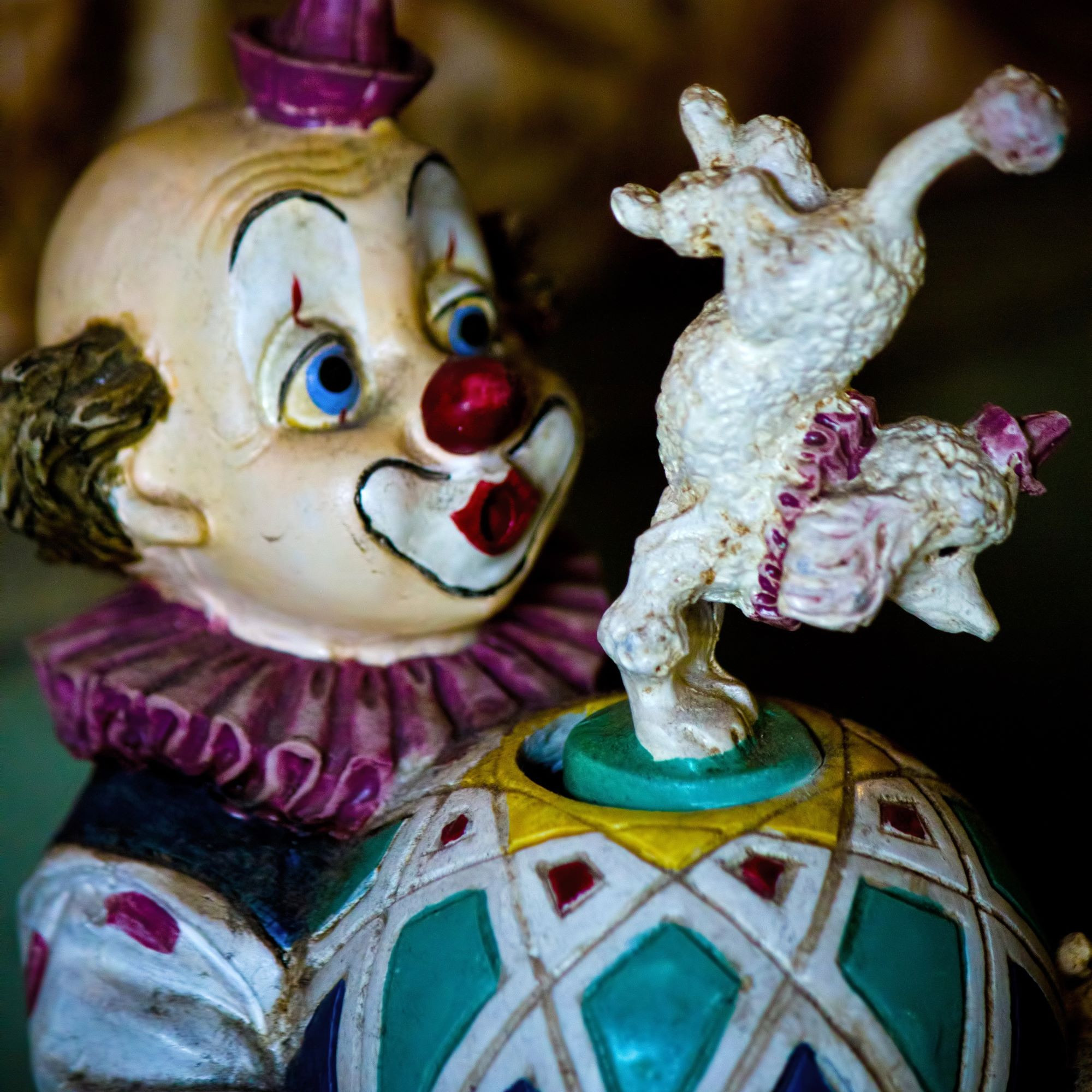 ピエロといえば、かつてはサーカスなどで、愉快な道化者の象徴として親しまれてきたが、いつの頃からか、その毒々しいメーキャップが恐怖感を与えるとして、近年では「ピエロ恐怖症」「クラウン恐怖症」なる病的心理まで引き起こすようになった。