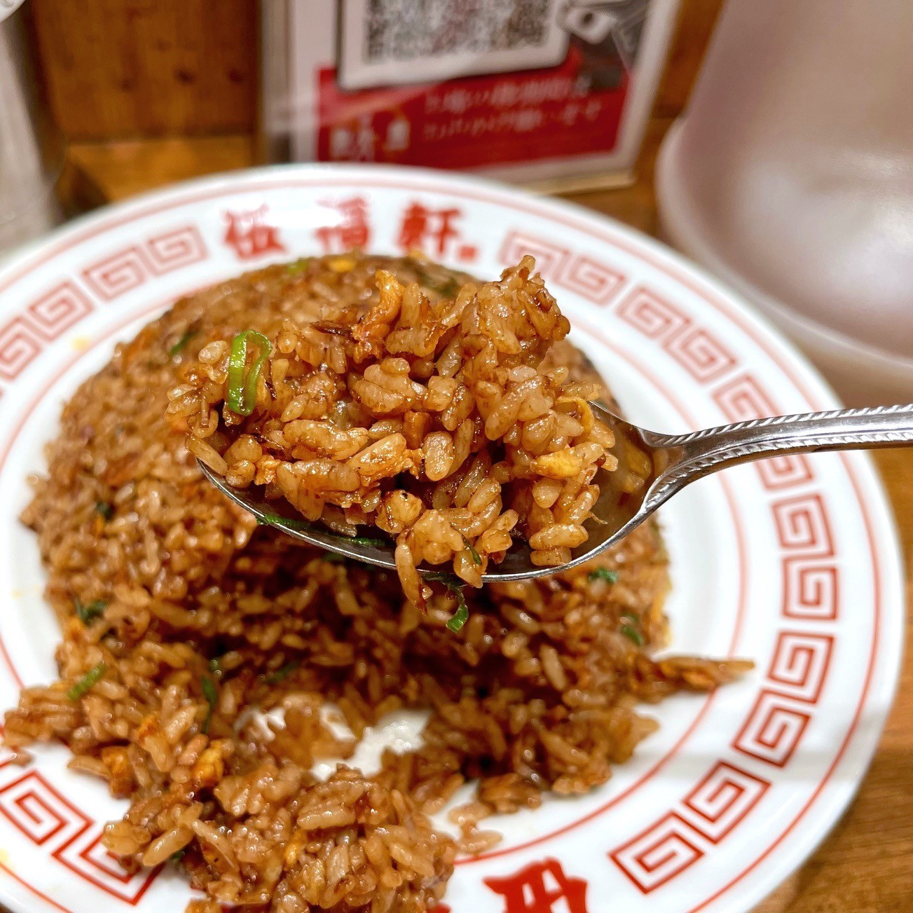 というわけで、筆者は「味噌バターコーン」(並1150円)と、ここのもうひとつの名物だという「黒ヤキメシ」(並760円)を注文。…したのだが、手違いで「辛味噌バターコーン」(並1250円)が提供された。作り直させるのも手間だし、なによりもったいないので、まぁいいかと、こちらを食してみることに。