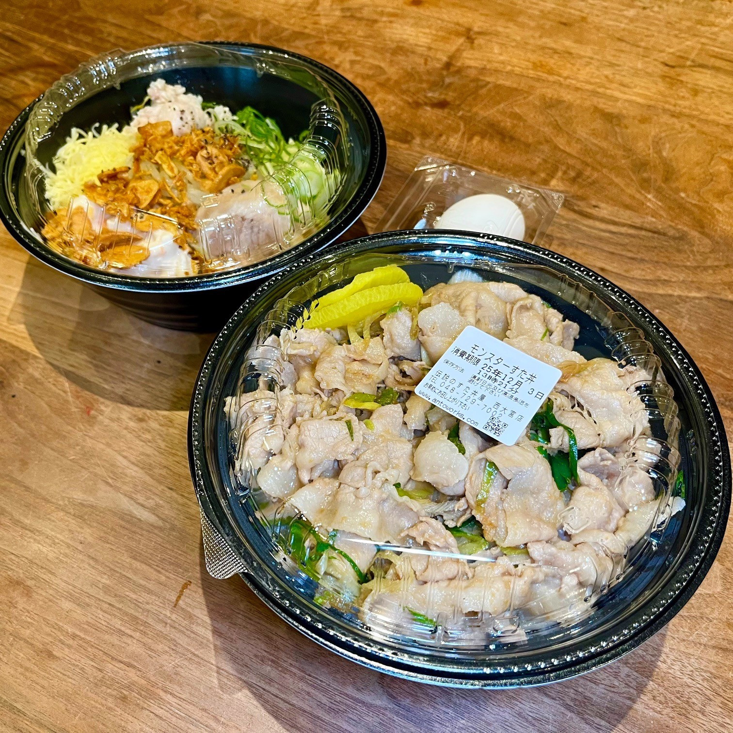 この商品は茶碗約3杯分の大盛りご飯に並盛の2倍のすたみな焼きを乗せ、キャベツ、もやしの野菜とチャーシュー、背脂、ニンニクという二郎系お馴染みの陣容を、ツリーのごとくうず高く盛りつけ。てっぺんには明太ポテサラ、チーズを雪に見立てて添えた一杯となっている。総カロリーは2200kcalと本家をも凌ぐ、まさにモンスター丼。店内飲食では食べ切れるか不安だったため、テイクアウトしていざ実食、である。