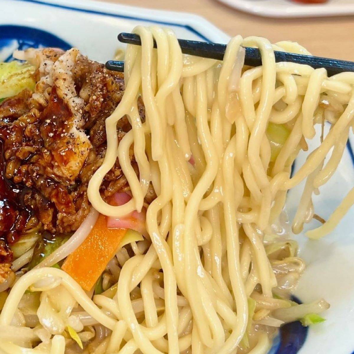ツルモチ食感の太麺はスープの絡みも抜群で、野菜がたっぷり入っていることもあって、レギュラーサイズであっても物足りなさは全く感じさせない。