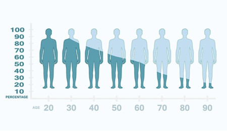 ところが、年齢に応じて「オトコの濃度は低下する」という。実際に、日本人を対象に行われた大規模な調査では、以下の年齢分布図のように、20代で高まったオトコの濃度は30代から減少していくというのだ。(出典:Reprod Med Biol. 2006 Mar 1;5(1):37–41. doi: 10.1111/j.1447-0578.2006.00121.x)