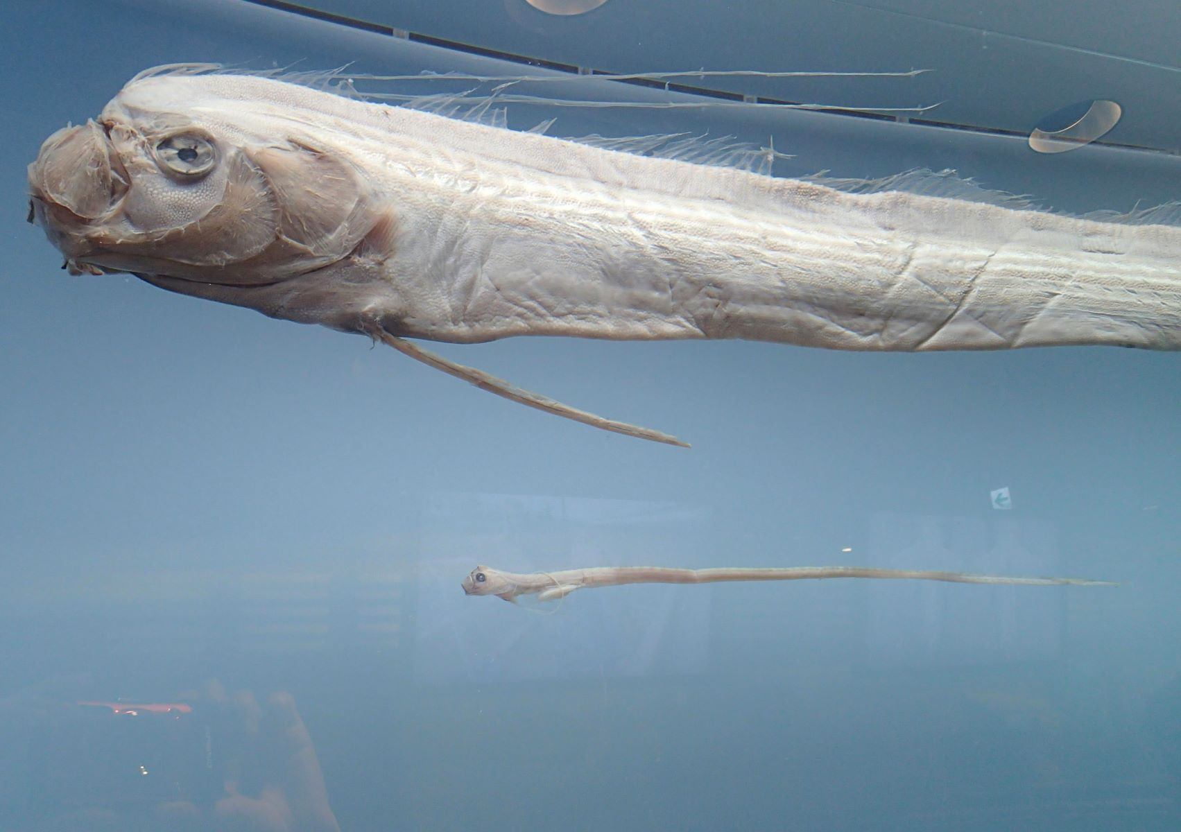 これは「リュウグウノツカイ」なる魚で、通常は水深1000メートル付近に棲む深海魚。最大で体長は9メートルにもなる。赤い背びれが特徴的なこの魚には、英語圏で不穏な異名がある。「ドゥームズデイ・フィッシュ」、すなわち「終末の魚」である。