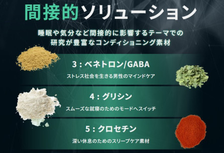 男性の悩み対策ではオトコの濃度やめぐりがフォーカスされがちだが、実はリラックスや睡眠サポートなどの“休息のケア”も見逃せないポイントとなる。休息はあらゆるコンディショニングの肝となるからだ。