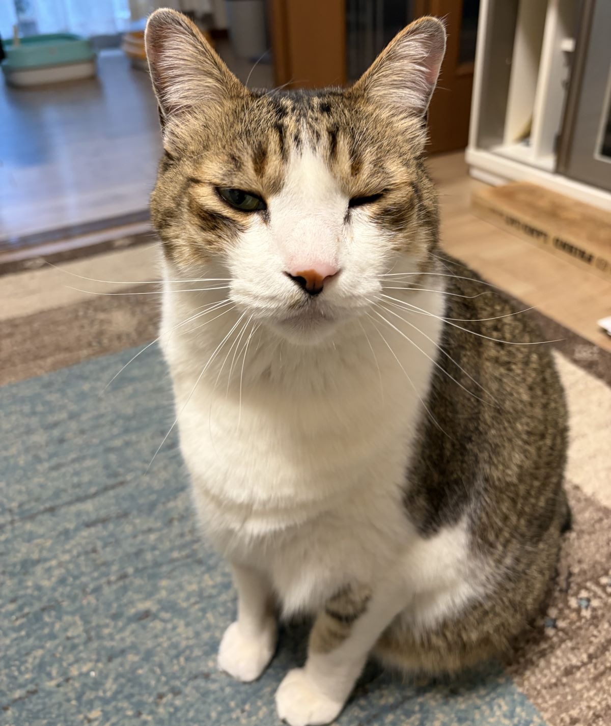 そんな状態が長引いた際には動物病院に連れて行って診てもらったが、やはりその場で原因はわからず。とりあえず点眼薬を処方してもらった。家に帰ってから抱っこして目を開かせ、目薬を1滴垂らす。これで1日か2日で正常な状態に戻ることがほとんどなので、深刻ではないのだが。